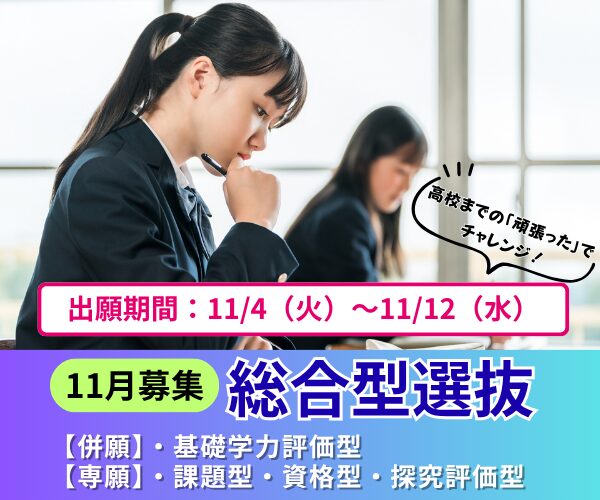 ● 出願書類の詳細は「総合型選抜(9月/11月募集)」の学生募集要項(p27-28) を確認してください。